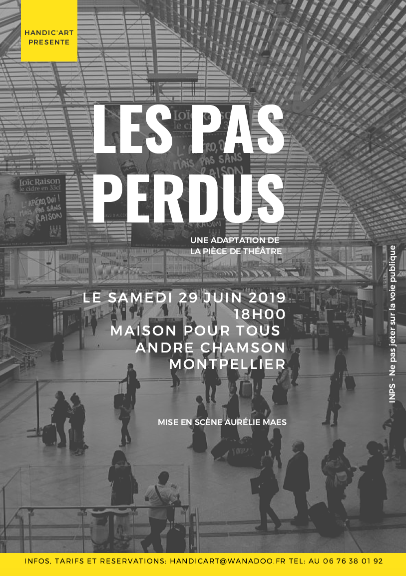 L’association HANDIC’ART  présente le 29 juin à 18h à la Maison pour Tous André Chamson de Montpellier une adaptation de la pièce “Les pas perdus”.