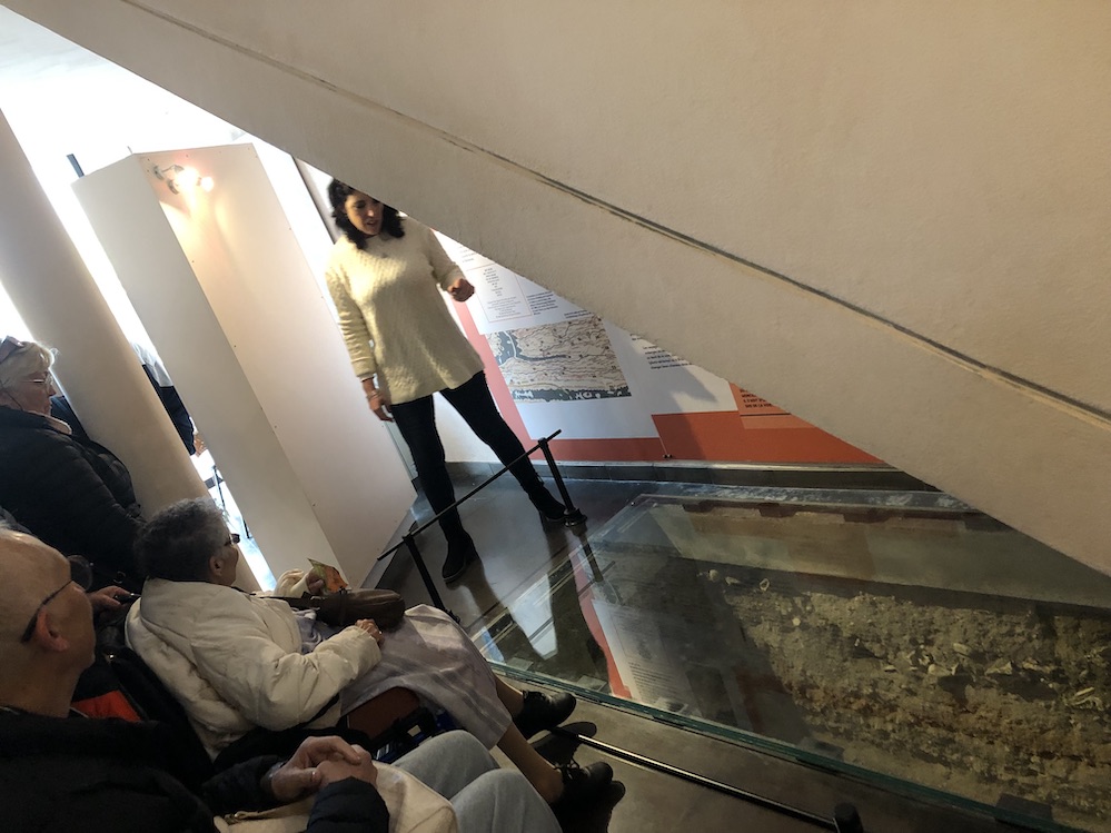Photo 1 et 2 : la guide montre la Voie Aquitaine qui partait de Narbonne, longeait les Pyrénées et allait jusqu’en Espagne.
